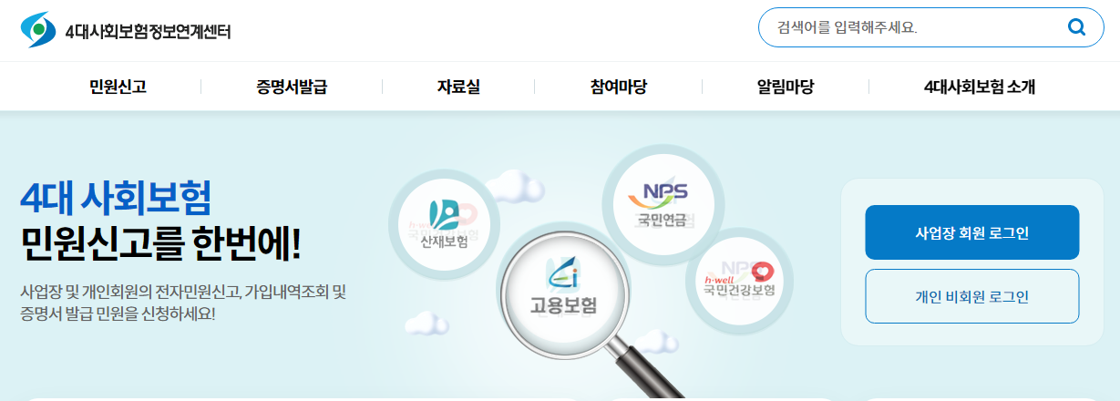 먼저, 아래 사진을 클릭하여 4대 보험정보연계센터로 갑니다.