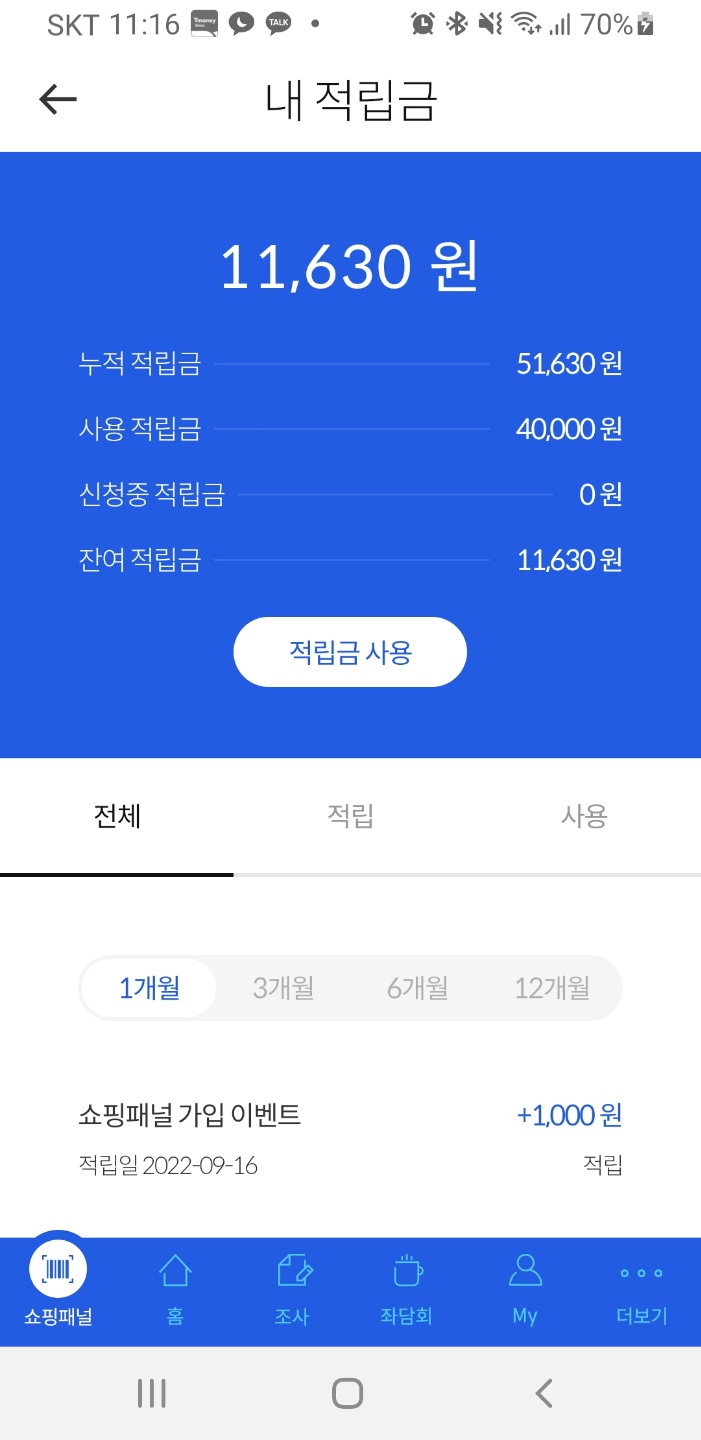 적립금의 사용은 3,000원부터 상품권으로 구입이 가능하며 1만 원부터는 계좌로 현금 이체도 가능합니다. 저는 보통 1년에 한 번 또는 반기별로 한 번씩 현금으로 이체하여 주식에 투자하려고 합니다.