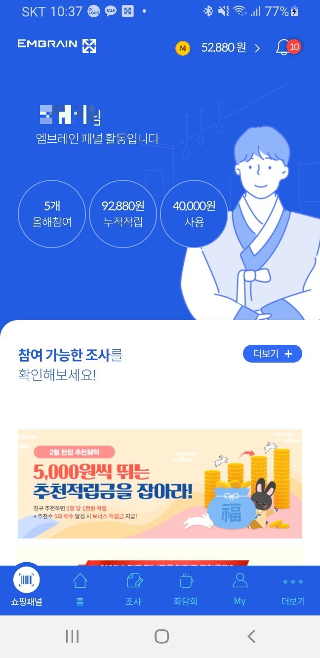 안녕하세요. 이번에 소개해드릴 앱테크는 설문조사를 통해 돈을 벌 수 있는 엠브레인 패널파워라는 어플입니다. 엠브레인 패널파워는 가입자의 정보에 따라 유용한 설문조사를 제공하고 이에