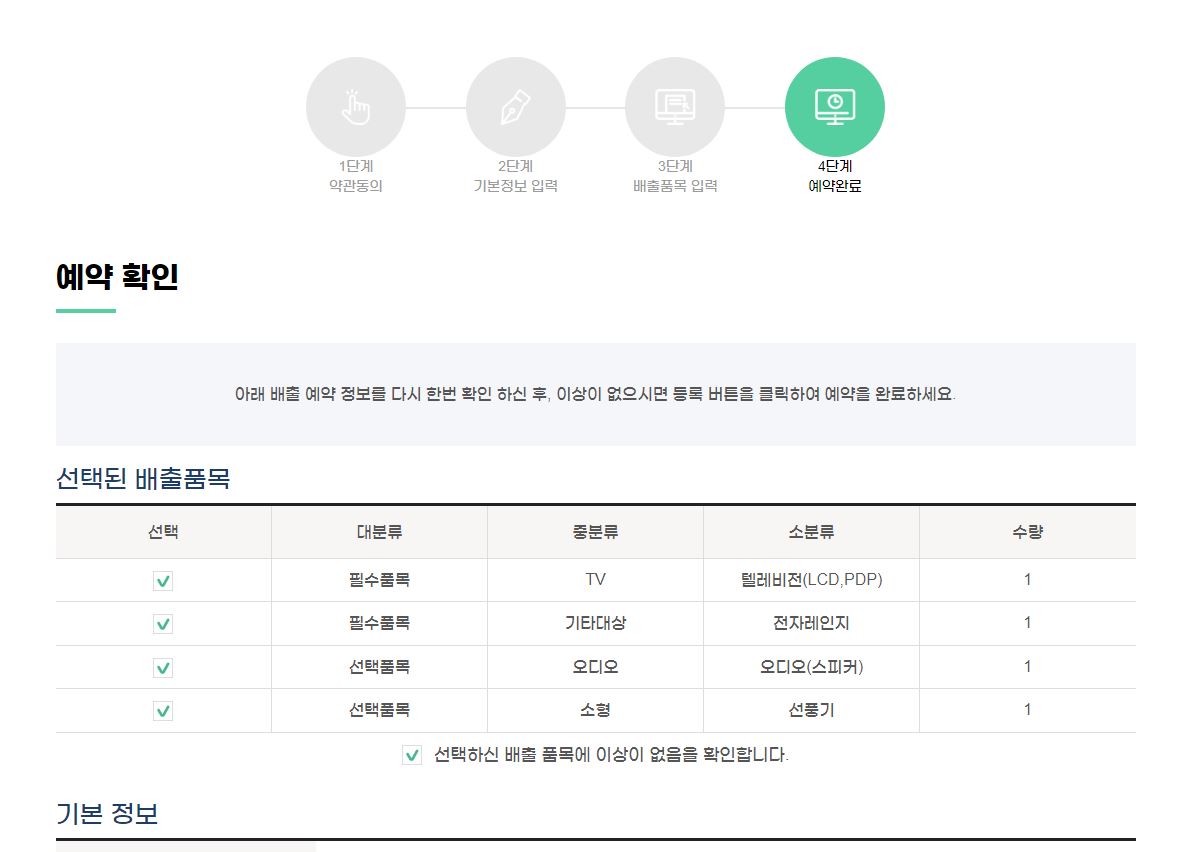 저는 TV와 오디오, 선풍기, 전자레인지를 배출하고자 하였고 예약 완료 하였습니다.