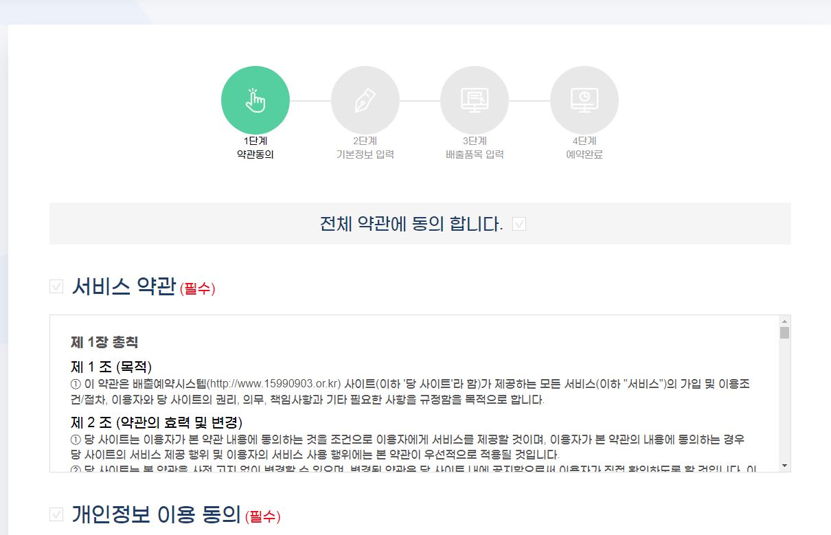 수거예약하기를 누르시면, 약관 동의를 받습니다. (아무래도 집주소 및 개인정보를 입력해야 해서 그런가 봐요)