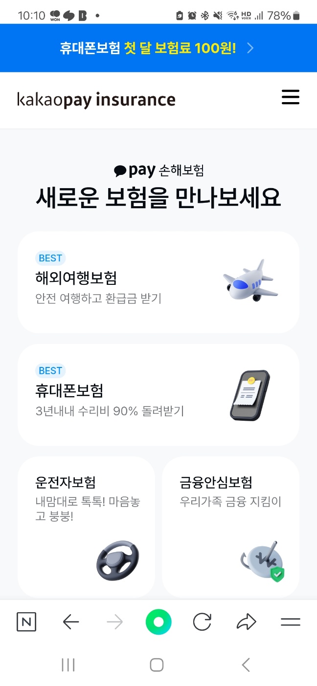 여러 곳을 비교해 봤는데 마이뱅크와 카카오의 여행자 보험이 평이 좋더라고요. 그중에서도 가입이 정말 쉬운 카카오 여행자 보험을 들어보려고 합니다.