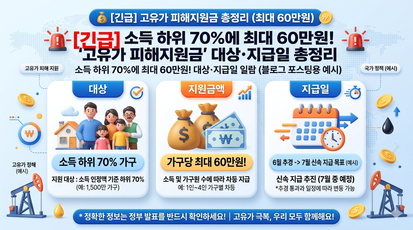 - 지급 시기: 기초생활수급자 등 취약계층은 4월 말부터, 일반 소득 하위 70% 가구는 대상 확정 절차를 거쳐 5월 초·중순부터 지급될 전망입니다.