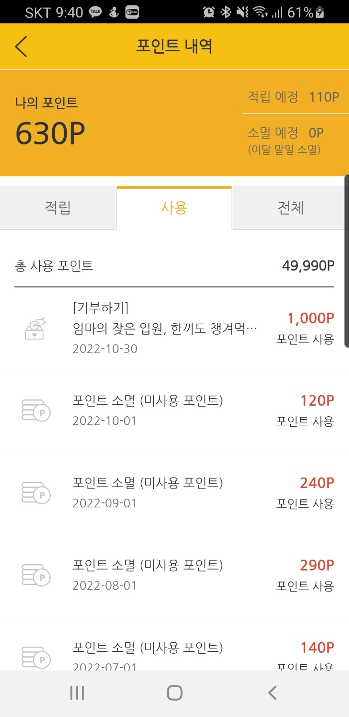 계속 사라지는 미사용 포인트가 아깝다ㅠㅠ