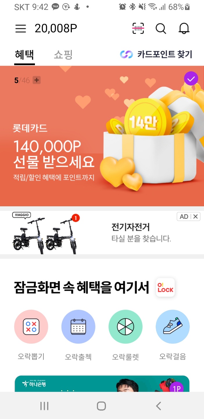 OK캐시백의 기본 출석을 하루도 빠짐없이 해보려고 했지만 회식이다 뭐다하면서 2~3일 정도 놓친 것 같네요. 그래도 꾸준하게 광고 클릭을 했고, 오!락이나 바로 적립 텝을 활용하여 놓치는 광고가 없도록 했었습니다. 그래서 드디어! 2만 포인트를 넘기게 되었습니다!!! 5만이 목표였으니 아직도 많이 멀었지만, 앞자리가 바뀌니까 뭔가 의욕이 더 생기는 것 같습니다. 하루에 10분 정도 소요되었던 것 같아요. 짧은 이동시간이나 대기시간에 활용하면 정말 좋은 티끌입니다.