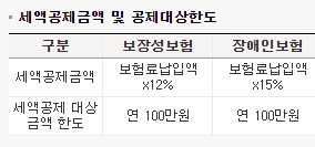 ◆ 건강보험이나 보험료는 납입액의 12%의 세금을 공제받습니다.