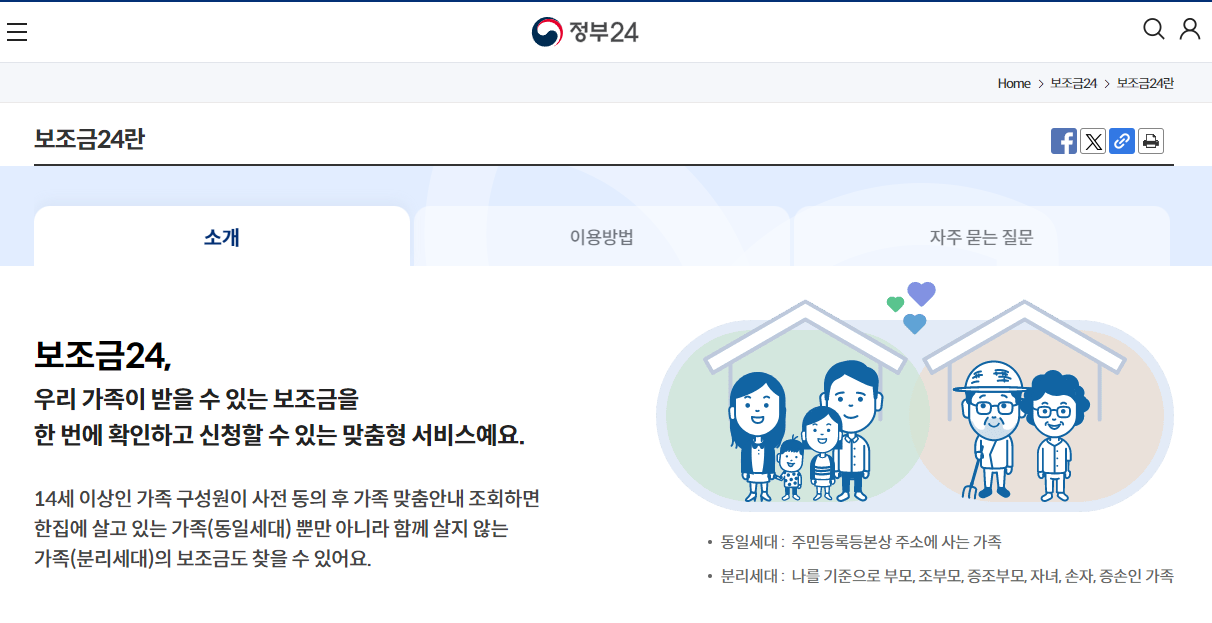 저도 이번 기회에 정부24의 보조금24에 들어가서 확인해 보니 가족이 받을 수 있는 보조금 종류도 확인 후 사용이 가능하고, 꼭 보조금(현금)이 아니더라도 문화 체험 등 다양한 혜택이 정부 사업으로 추진되고 있음을 알게 되었습니다.