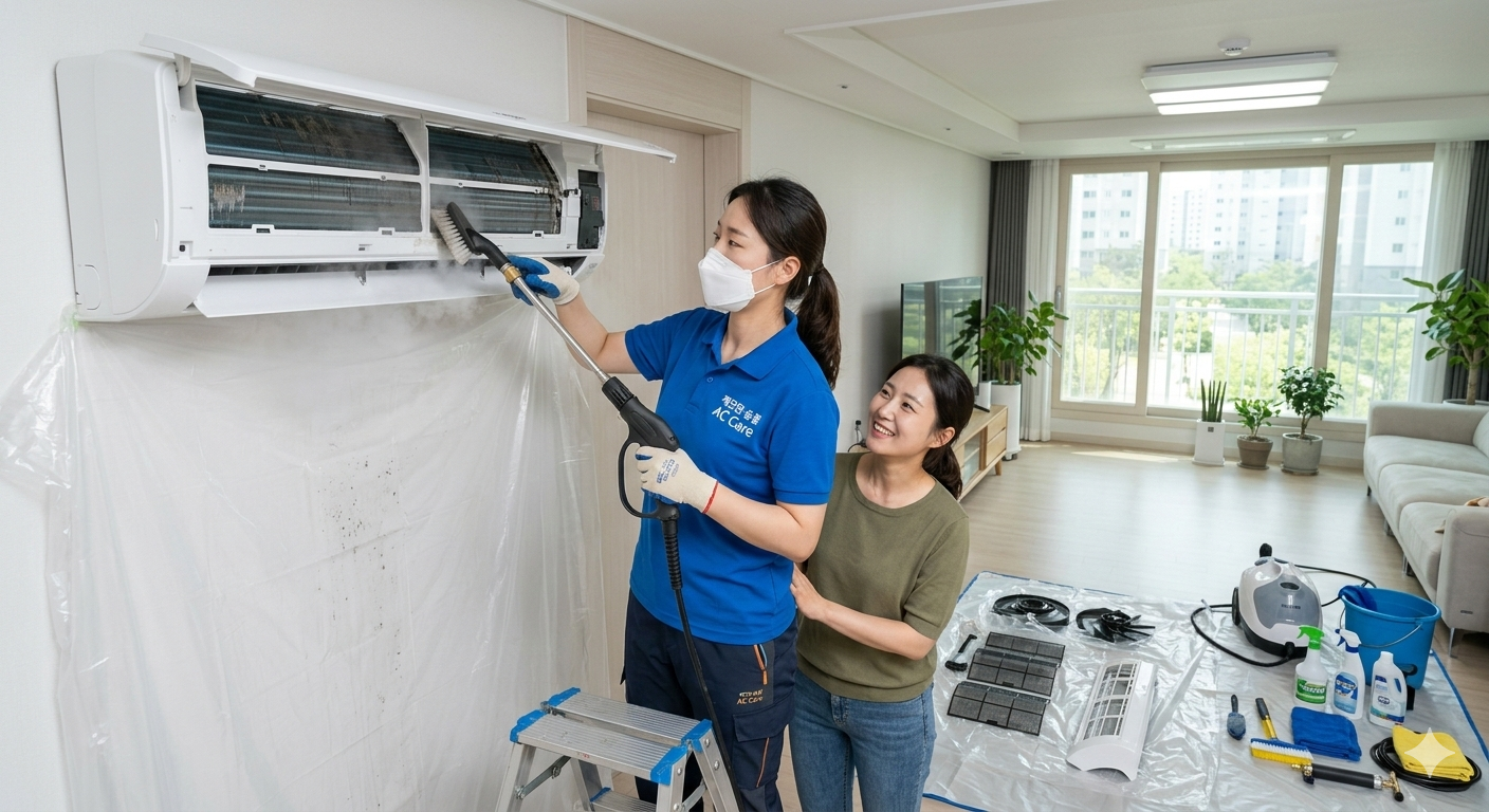 - A/S 보장 여부: 청소 후 조립 불량으로 소음이 나거나 물이 떨어질 수 있습니다. "청소 후 1달 이내 무상 A/S"가 명시된 업체를 고르세요.